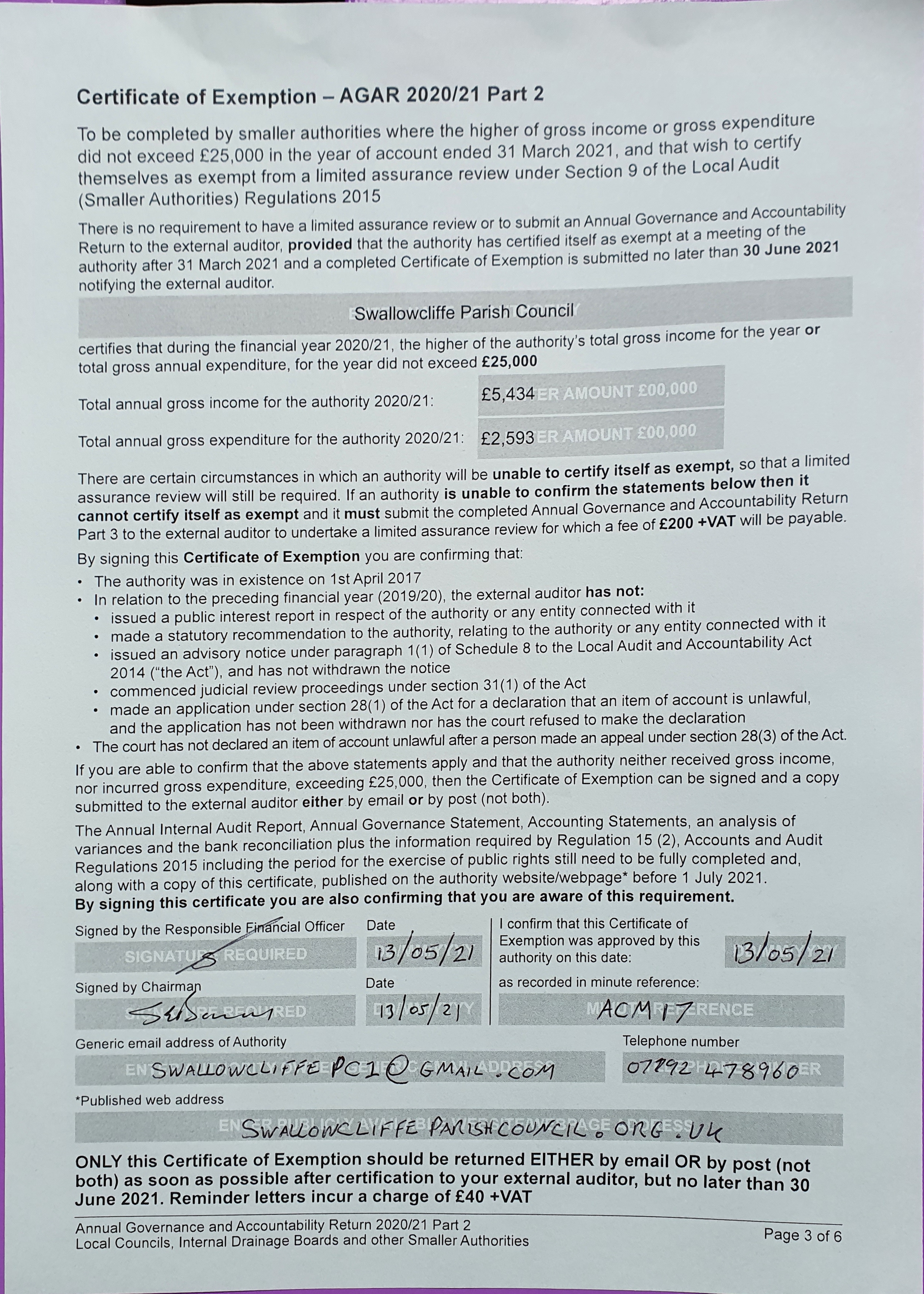 Certificate of Exemption 2020/21